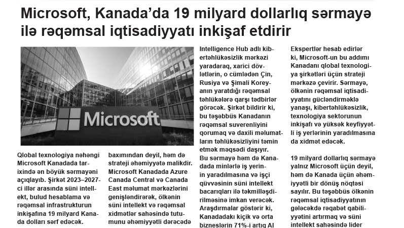 Microsoft-dan Kanadaya tarixi sərmayə - 19 milyard dollarla rəqəmsal dönüş